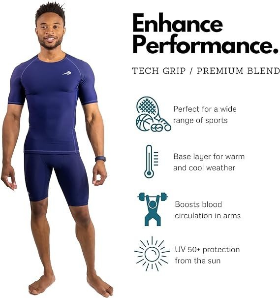 • SUPERIOR COMPRESSION: Our mens short sleeve compression shirt delivers powerful compression to shoulder, chest, back, & abs for max athletic performance. Shirt is lightweight, comfortable, supportive.