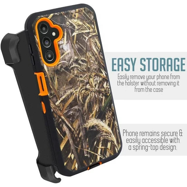 For Samsung Galaxy A14 5G Heavy Duty Rugged Dropproof Full Body Protection Phone Case with Belt Clip Holster & Built in Screen Protector - Camo Orange
