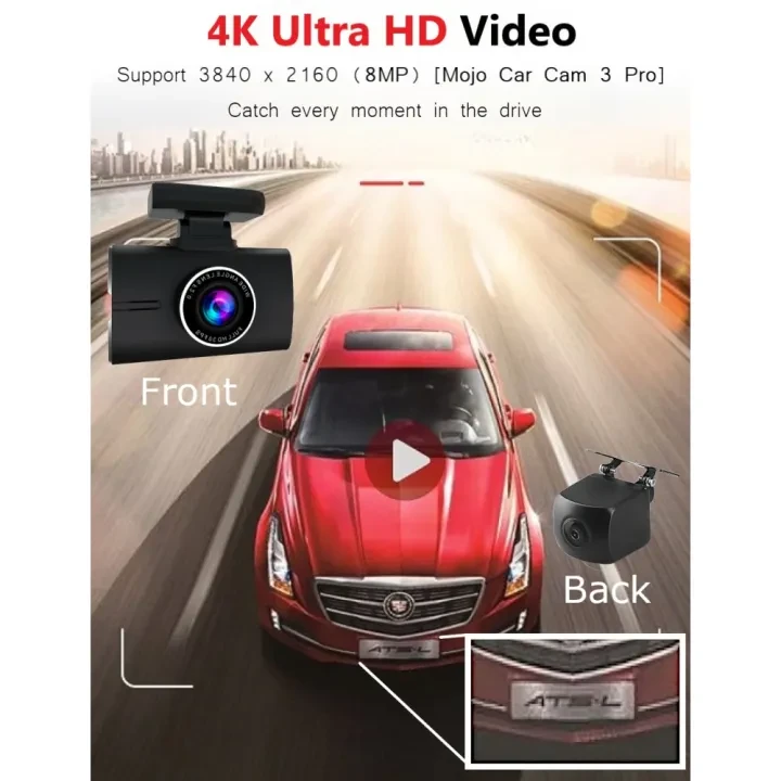 Mojo Car Cam 3 Pro 4K Car Camera HD Rear Car Dash Cam with Motion Detection 24 Hour Parking Monitor Mobile APP Video Playback