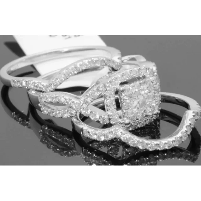 10K WHITE GOLD 1.50 CARAT WOMENS REAL DIAMOND ENGAGEMENT RING WEDDING BANDS SET